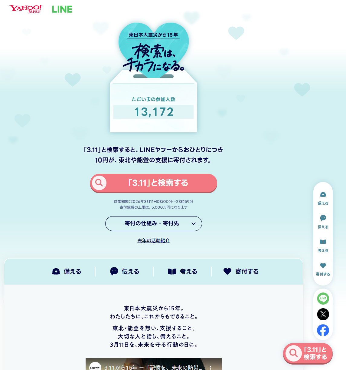 今年もYahoo!で「3.11」と検索で寄付できます!