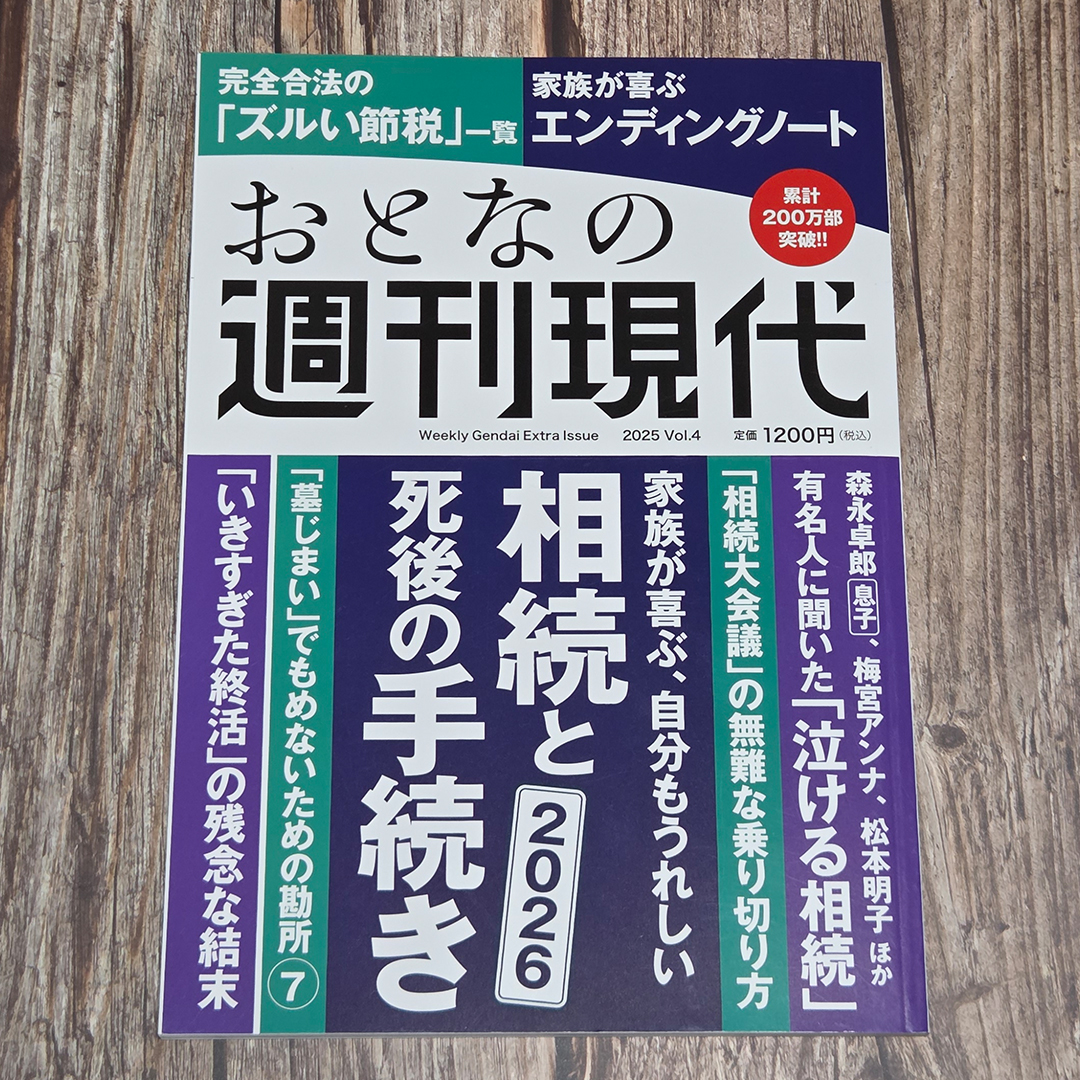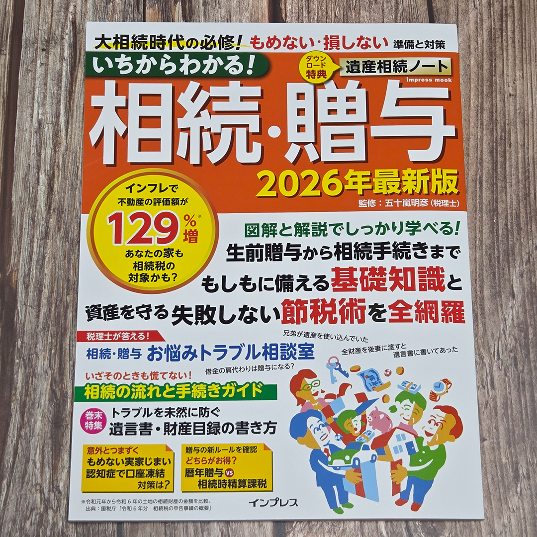 「日経ムック よくわかる相続 2026年版」、「いちからわかる! 相続・贈与 2026年最新版」、「週刊現代別冊 おとなの週刊現代 2025 vol.4 家族が喜ぶ、自分もうれしい 相続と死後の手続き」の三冊です。